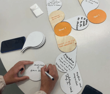 Un outil design, imaginé et conçu par Mariam, designeuse sociale, pour faciliter le passage de l’idée à la structuration.